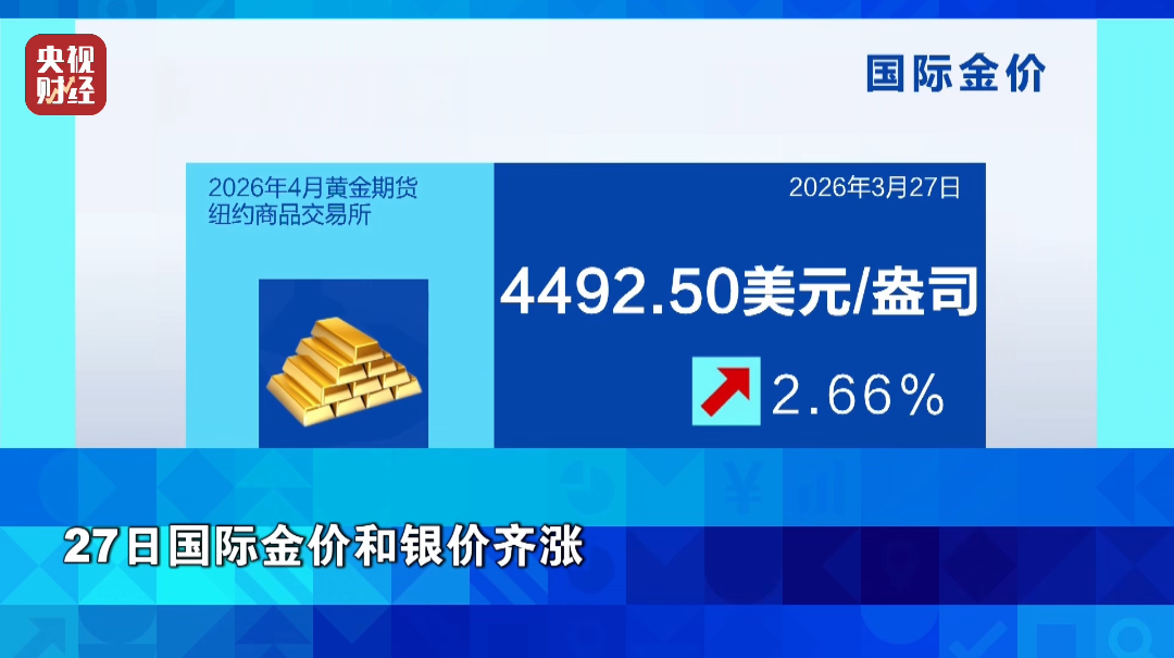 27日国际金价和银价齐涨