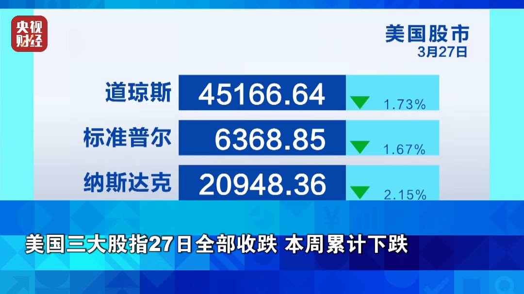 美国三大股指27日全部收跌 本周累计下跌