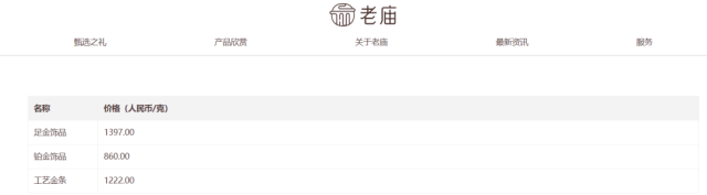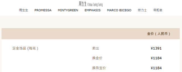 据查询发现,老庙黄金足金饰品报1397元/克,较前一日1365元/克涨32元。老凤祥足金饰品报1396元/克,较前一日1368元/克涨28元。周生生足金饰品报1391元/克,较前一日1364元/克涨了27元。