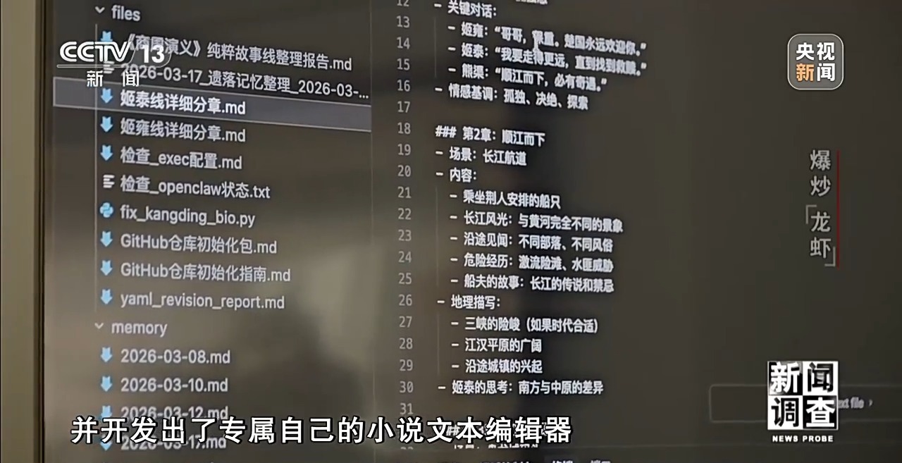 安装好“龙虾”后,尹俊做的第一件事,就是和它一起设计并开发出了专属自己的小说文本编辑器。