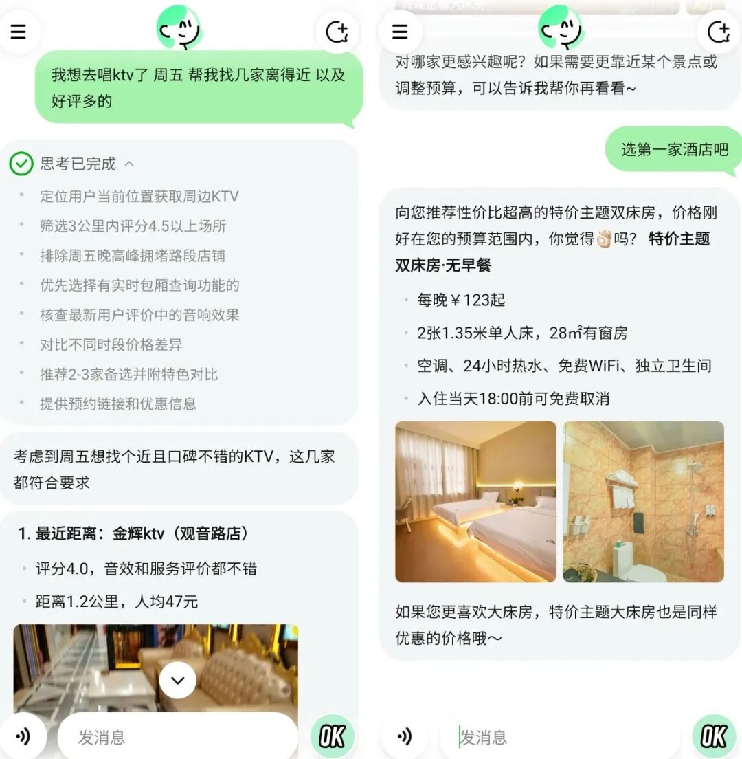 如AI小美,其可直接调用美团内部接口,实现外卖下单、餐厅推荐、酒店预订,其在2025年9月已作为独立App上线,长期处于测试期,未做大规模推广,也没能抢占先机。