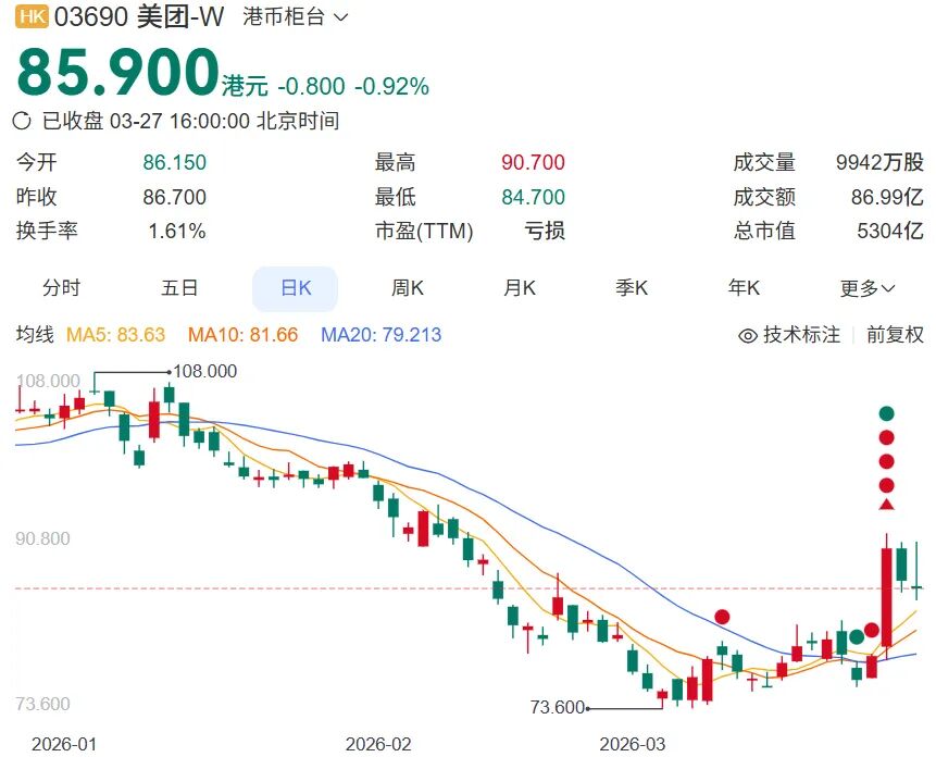 数日前,监管部门转发媒体文章《外卖大战该结束了》,被视为停战的信号,美团股价一度大涨近15%。