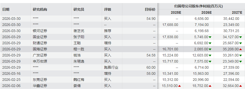 加之近期国内猪价跌至近二十年低位,所以在公司年报披露后,多家卖方机构下调了牧原股份2026年盈利预期值,从此前的百亿规模降至数十亿之间不等。
