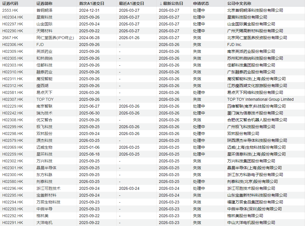 北京同仁堂医养投资股份有限公司、南京英派药业股份有限公司、苏州和林微纳科技股份有限公司等的港股申请失效。