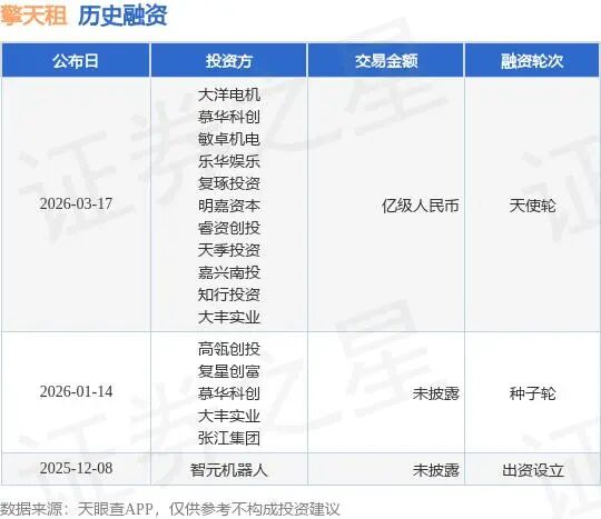 3月中旬,一家名为擎天租的机器人租赁平台,宣布完成亿元级融资。投资方名单里,除了大洋电机、慕华科创等硬科技资本,赫然出现了乐华娱乐、黄晓明的明嘉资本等娱乐圈面孔。这家公司成立仅三个月,估值已飙升至30亿元人民币。