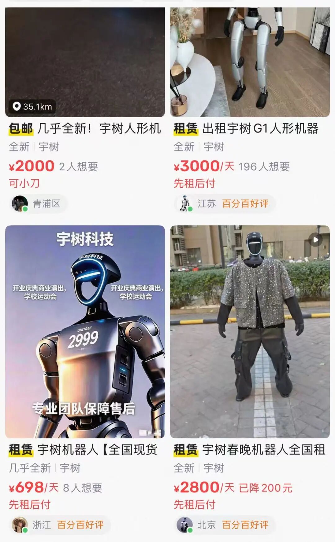 租赁商小陈在去年年初高价买了多台机器人,如今还没把本金赚回来。“机器人的折旧率比汽车还高,买入的时候三十多万,不到一年市场价格已经破发了。”他在闲鱼上开始低价抛售设备,但也无人问津。