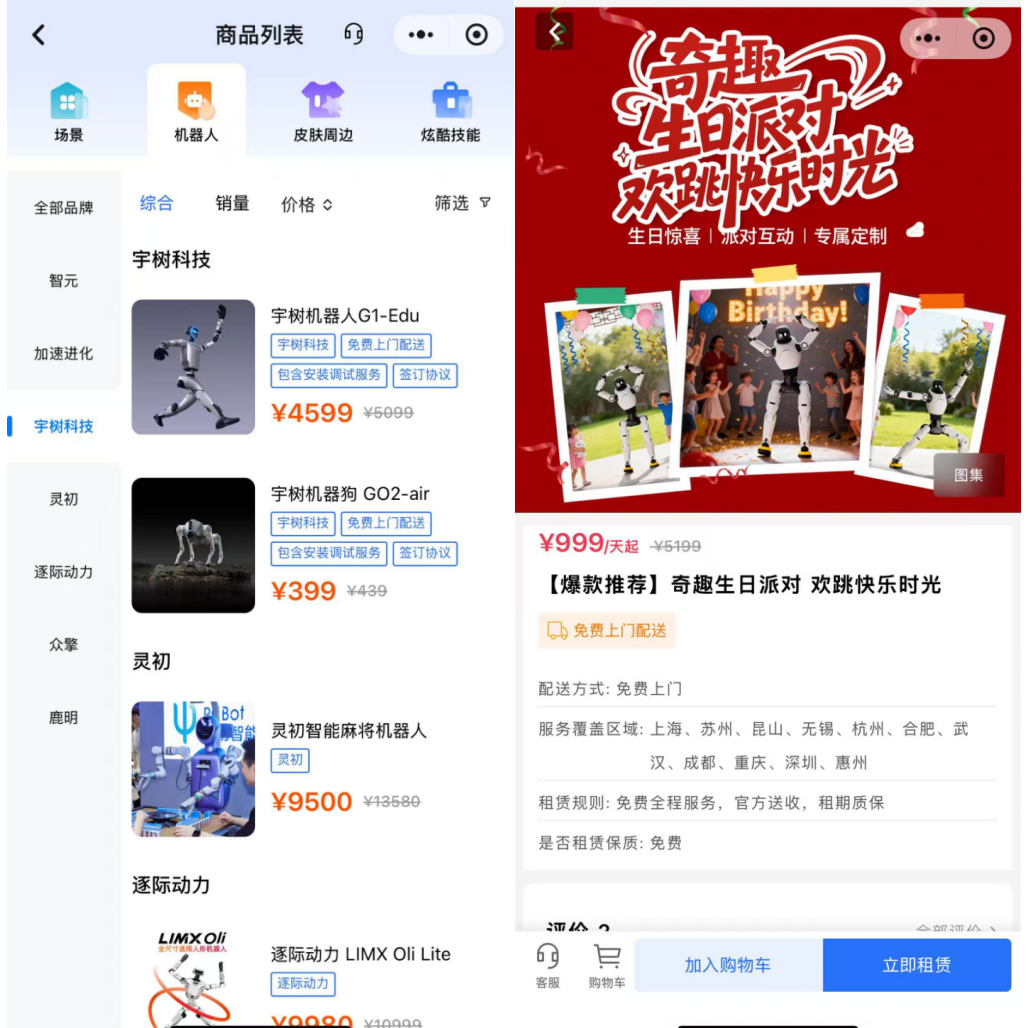 它的商业模式不难理解:平台一端连接超过200家机器人供应商,另一端对接有租赁需求的客户——企业年会、商场开业、展会引流、婚礼助兴,甚至个人生日派对。