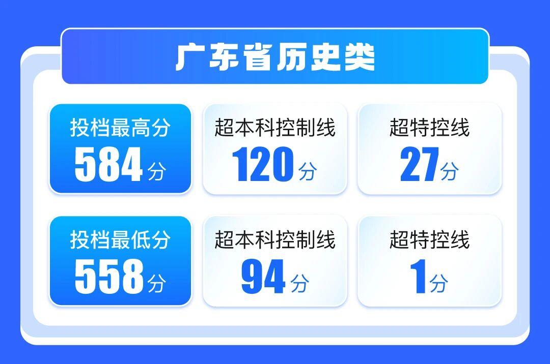 历史类最高分584分,超本科控制线120分,超特控线27分;最低分558分,超本科控制线94分,超特控线1分。省外招生省份的录取线均超过当地特控线,显示出跨区域吸引力。