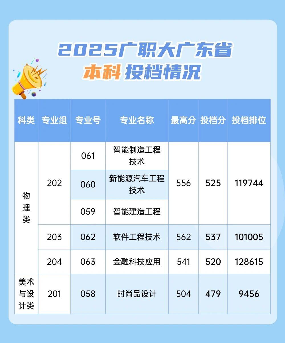 广东轻工职业技术大学2025年本科各专业录取最低分与最低排位表。