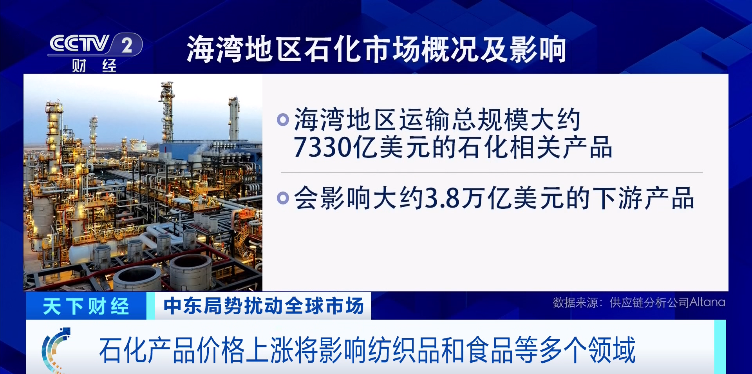 Altana的数据显示,海湾地区运输了总规模大约7330亿美元的石化原料、中间品和成品,这些会进一步影响到大约3.8万亿美元的下游商品,从牙膏到毛巾,几乎覆盖各类日常消费。