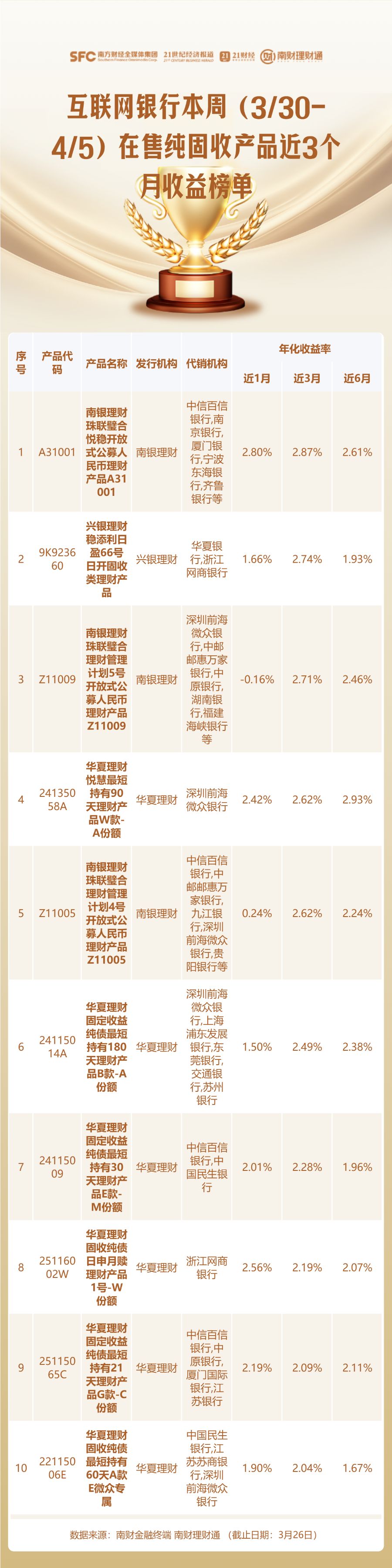 此外,南财理财通虽力求客观公正,但不对本评价榜信息的真实性、完整性和准确性作任何保证,排名信息仅供参考。