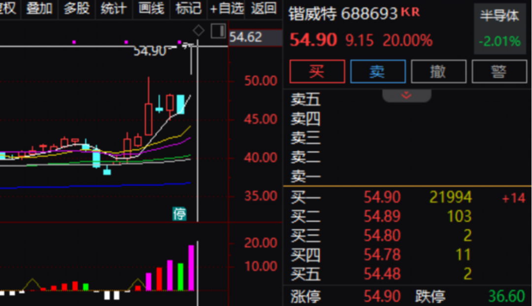 锴威特(688693)重大资产重组预案3月28日披露,公司股票今日复牌后早盘“20cm”涨停。