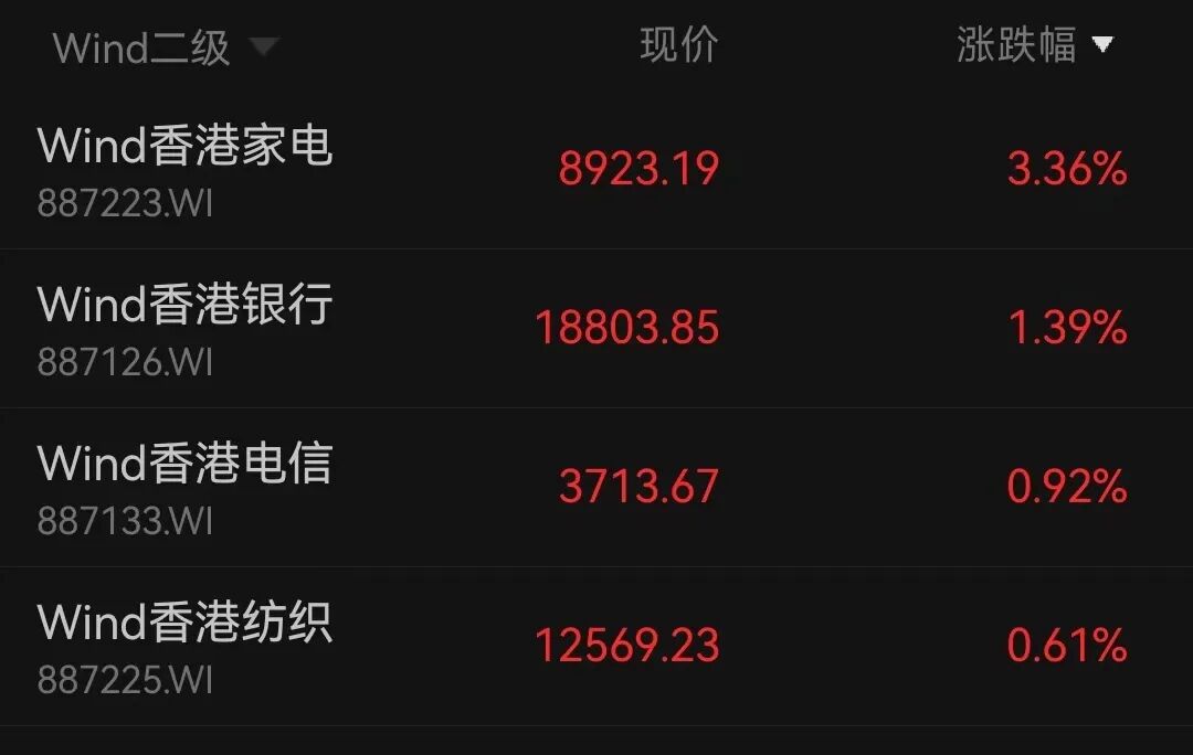 板块方面, 家电、银行、电信股涨幅居前;半导体、煤炭、化工股跌幅居前。
