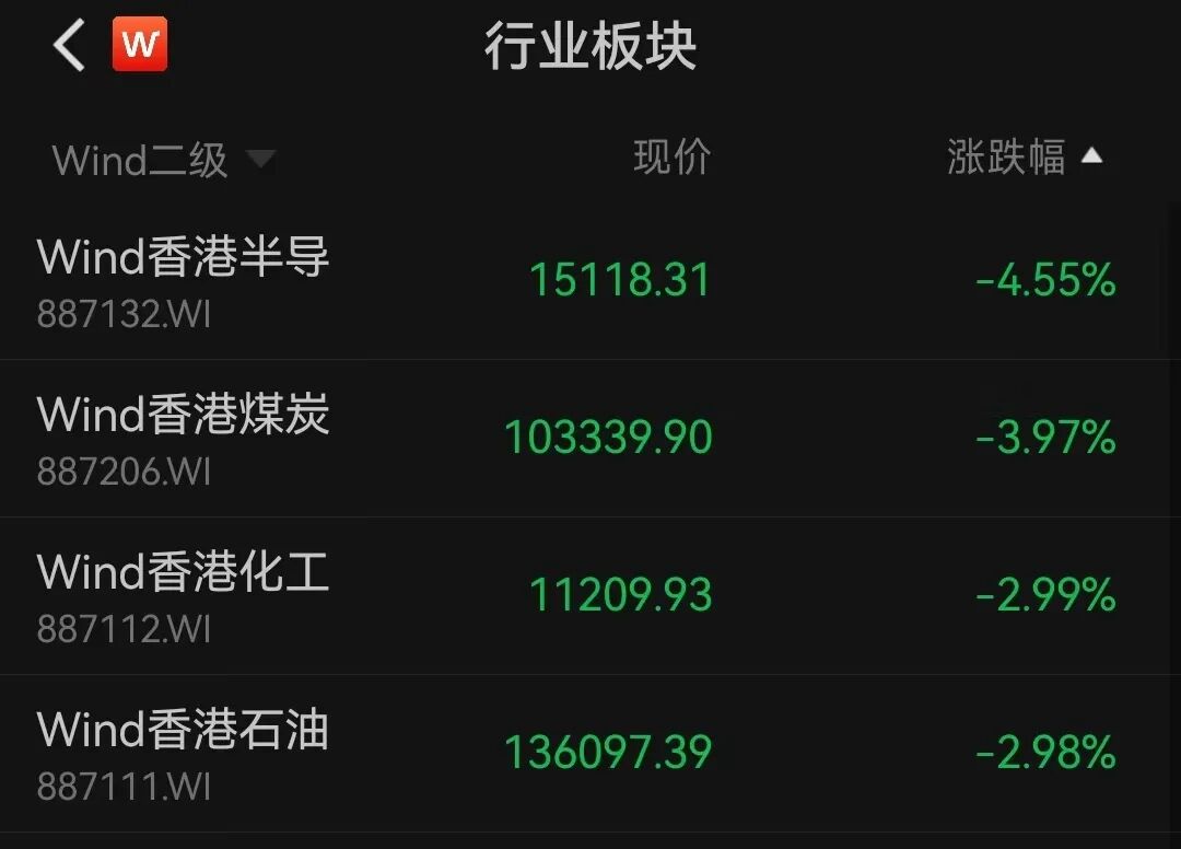 煤炭板块下挫, 中煤能源、兖矿能源跌超5%,中国神华跌超3%。 大型科网股普跌, 比亚迪电子跌逾5%, 小米集团 、金山软件、中芯国际等跌超1%,小鹏汽车跌超2%。