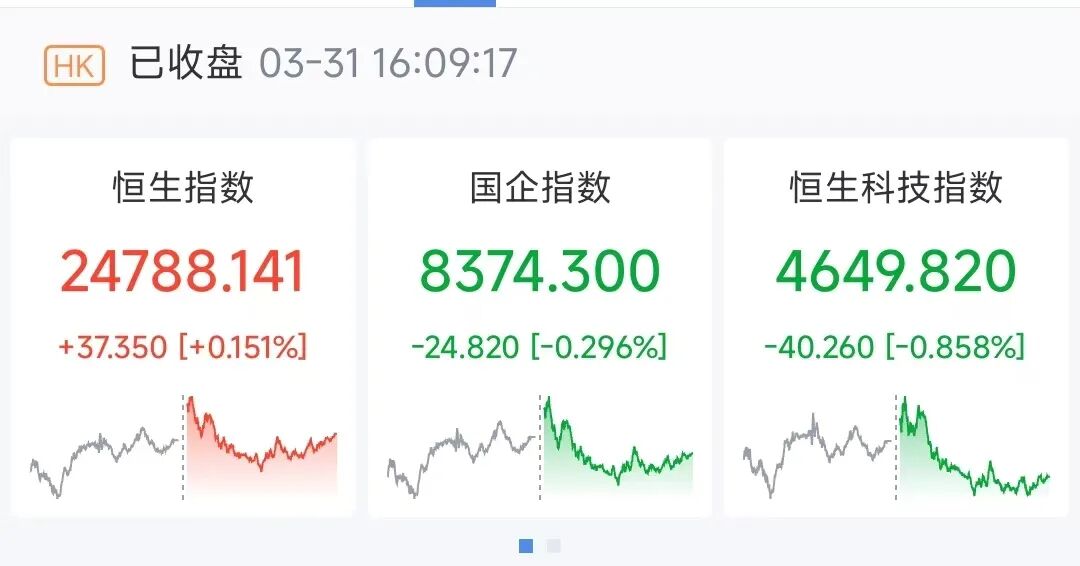 记者 | 杜波 编辑 | 陈柯名 杜恒峰 校对 | 程鹏 3月31日港股收盘, 恒生指数涨0.151%,恒生科技指数跌0.858%,国企指数跌0.296%。