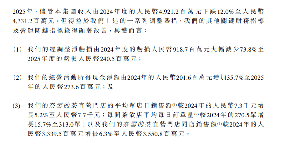 在大幅关店后,奈雪直营店的各项经营数据有明显改善。2025年,其直营店的平均单店销售额同比上涨了5.48%至约7700元;单店日均订单量同比上涨了15.71%至313单;每笔订单平均销售金额同比下降了8.61%至24.4元。