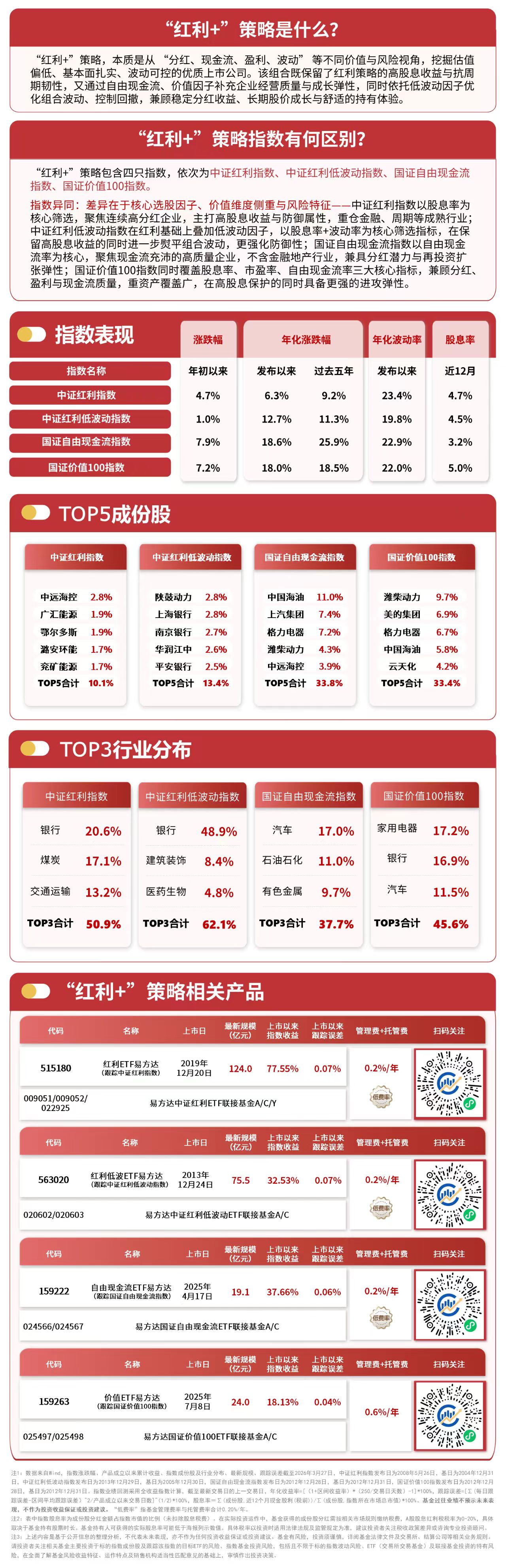 3月30日,大盘先抑后扬,“红利+”指数震荡上行。截至收盘,中证红利低波动指数上涨1.0%,中证红利指数上涨0.9%,国证自由现金流指数上涨0.5%,国证价值100指数上涨0.2%。