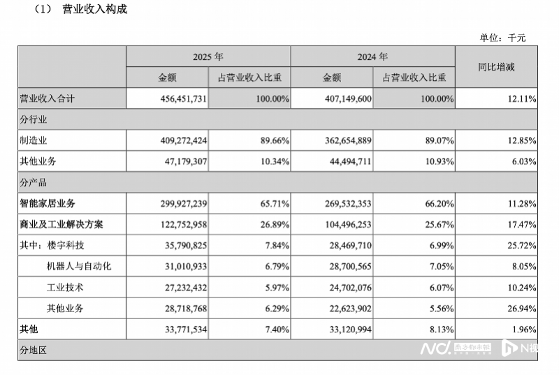 分业务板块看,ToB业务成为增长新引擎。2025年ToB业务收入1228亿元,同比增长17.5%,增速显著高于ToC业务的13.3%。其中,智能建筑科技表现最为突出,2025年上半年毛利率达29.33%,为所有业务板块最高,超过智能家居的28.52%;新能源及工业技术板块中,合康新能上半年利润同比增长733%,利润增速远超营收增速;机器人与自动化业务也保持稳定增长态势。相比之下,ToC业务虽仍为基本盘,贡献超六成营收,但受行业价格战影响,增速有所放缓。