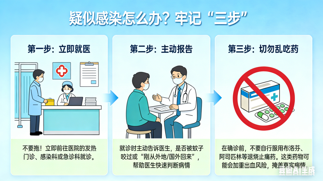 就诊时,一定要主动告诉医生:“我最近被蚊子咬过”或“我刚从外地/国外回来”。这能帮助医生快速判断,为您节省宝贵的诊疗时间。