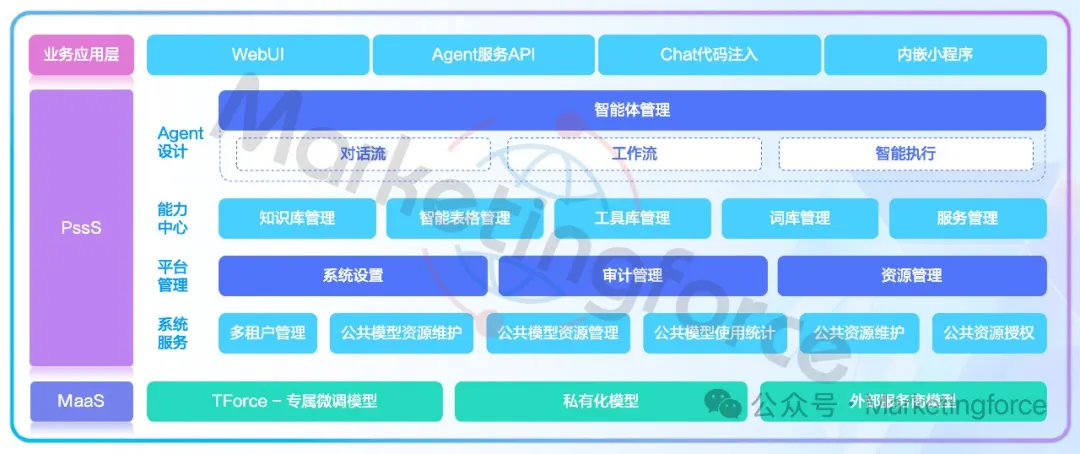基于此,赵绪龙专门搭建一个AI-Agentforce智能体中台,帮客户管理、治理、迭代智能体,希望将此平台作为AI原生企业管理的基础设施。