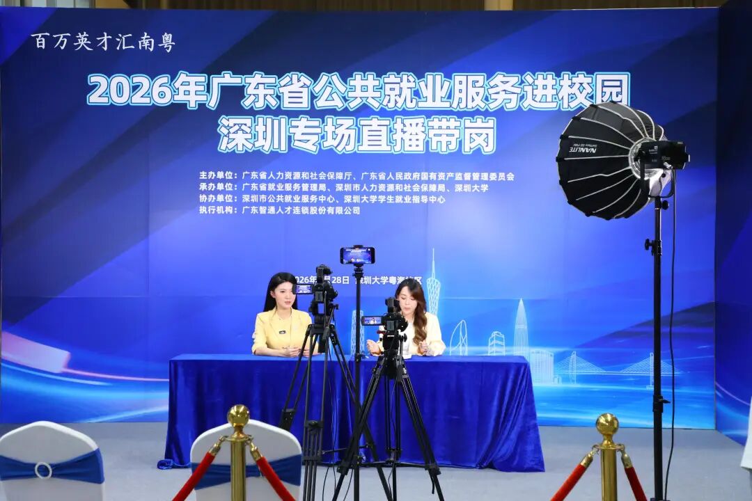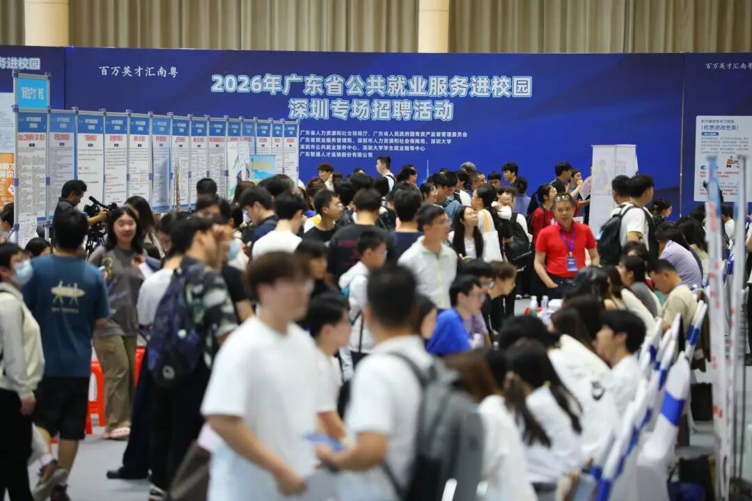3月28日下午, 2026年广东省公共就业服务进校园深圳专场招聘活动 在深圳大学粤海校区成功举办。本次活动由广东省人力资源和社会保障厅、广东省人民政府国有资产监督管理委员会联合主办,广东省就业服务管理局、深圳市人力资源和社会保障局承办,旨在加强高校毕业生就业政策和服务高品质供给,为广东省高校毕业生就业之路保驾护航。