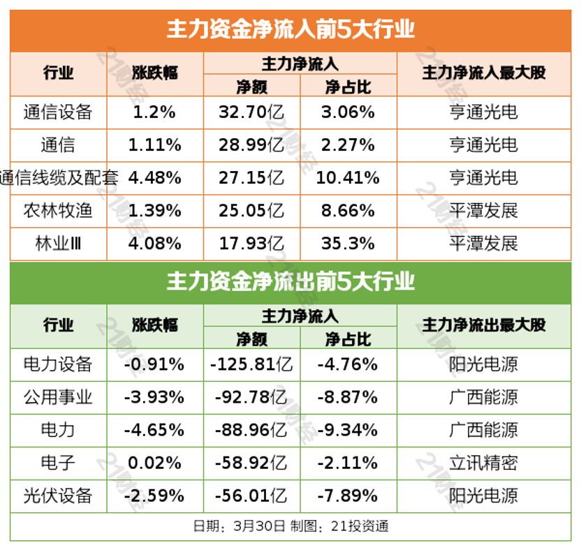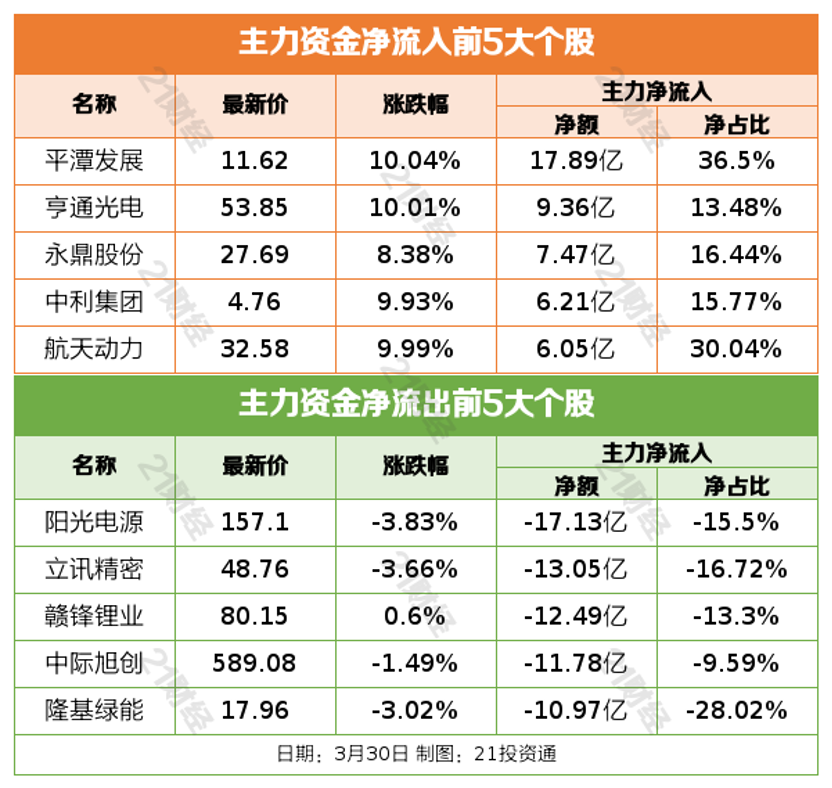 3月30日,市场探底回升,三大指数涨跌不一,沪指拉升翻红,此前一度跌超1%,创业板指、深成指跌幅收窄。截至收盘,沪指涨0.24%,深成指跌0.25%,创业板指跌0.68%。沪深两市成交额1.92万亿,较上一个交易日放量626亿。