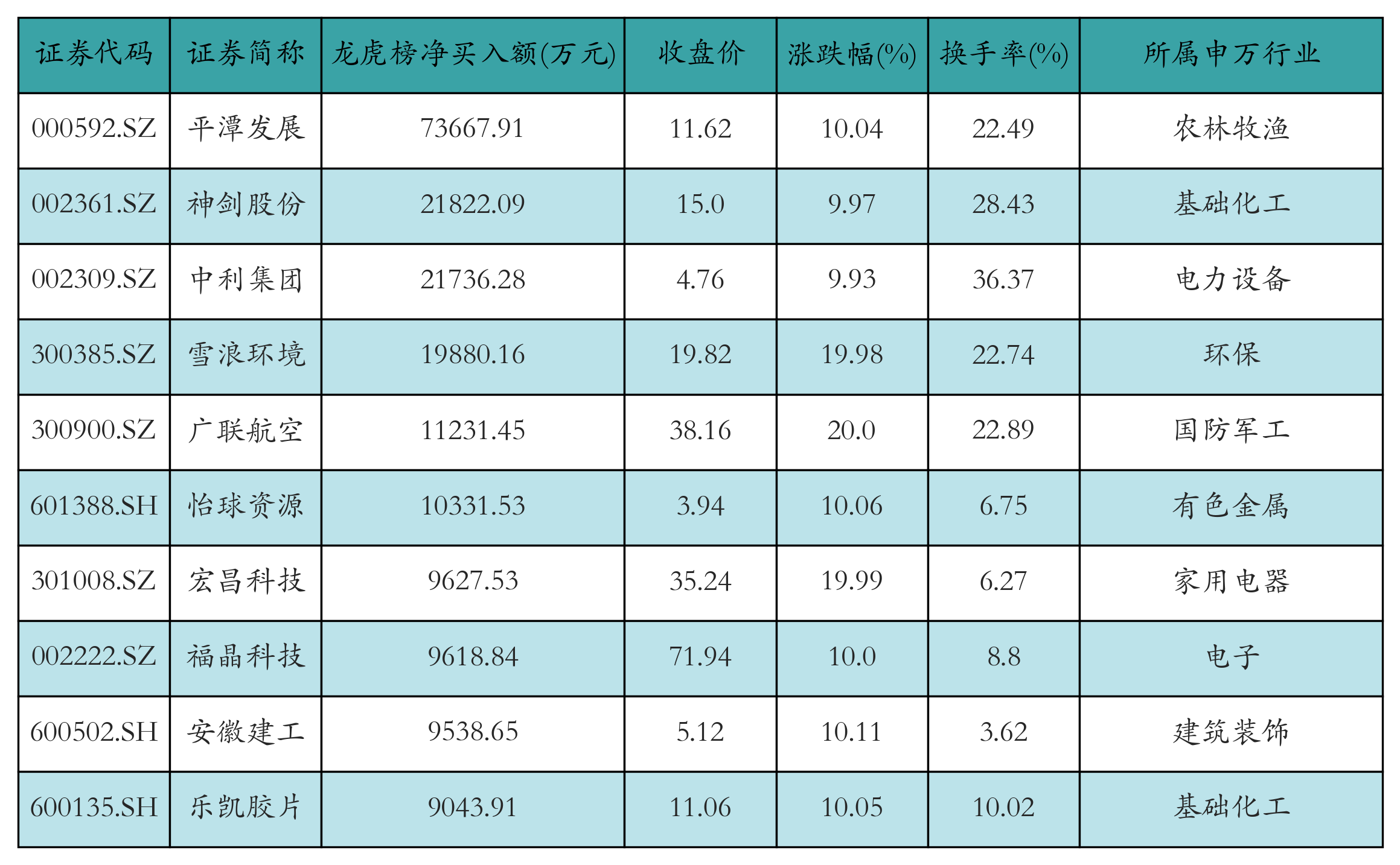 昨日龙虎榜营业部净买入额前10详情见下表: