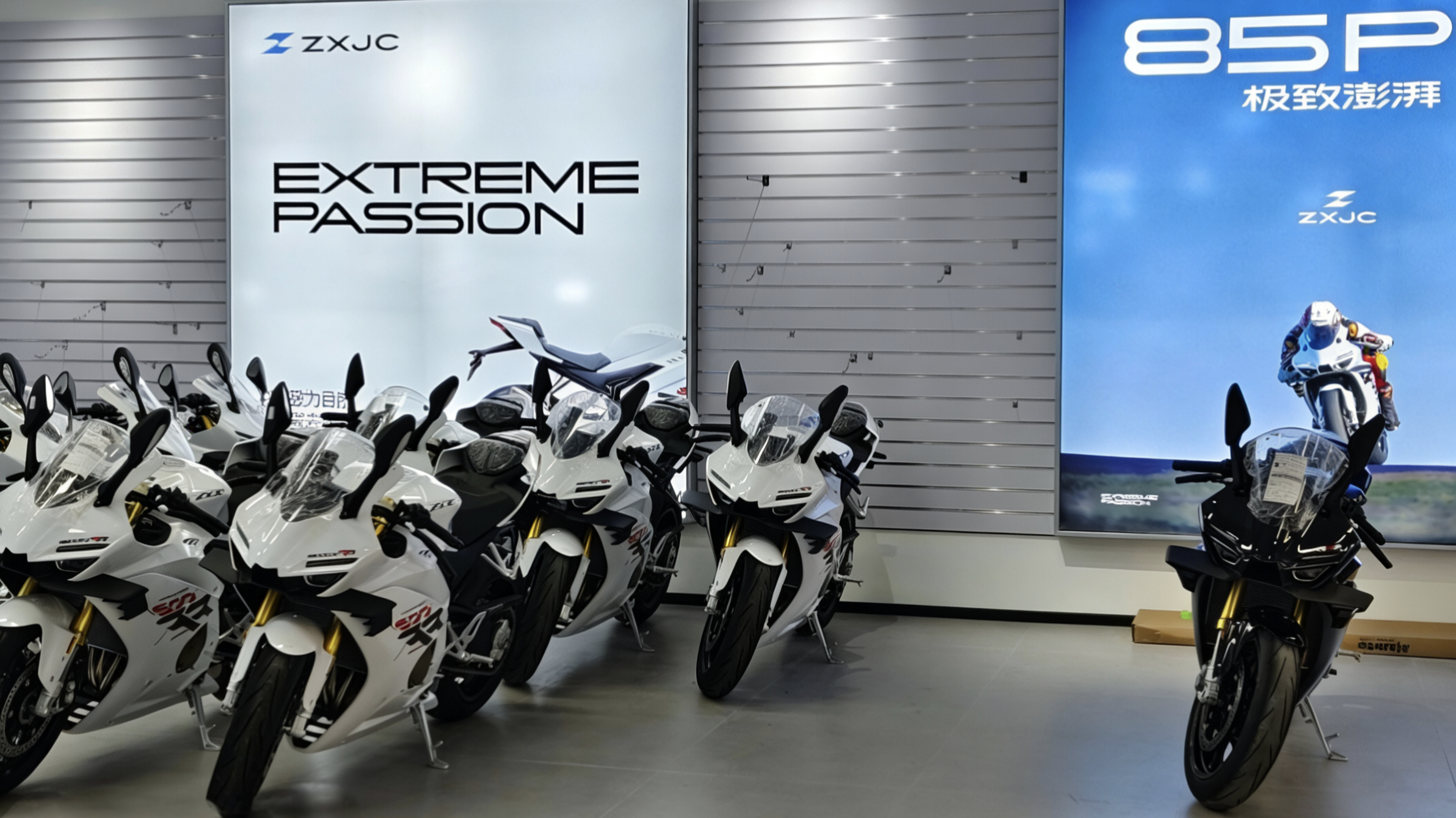 李经理向记者展示了张雪机车的产品线:老款500RR单摇臂店内有现车,裸车33680元;夺冠的820RR售价43800元,只能在线上小程序预定。“张老板自己研发的大马力发动机,135匹马力,最高版本150匹,打破了‘国产不如进口’的偏见,一样可以跟国外十几万、二十万的进口车对比。”