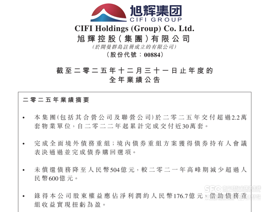 2025年,旭辉控股核心财务指标全面改善,成功实现扭亏为盈。