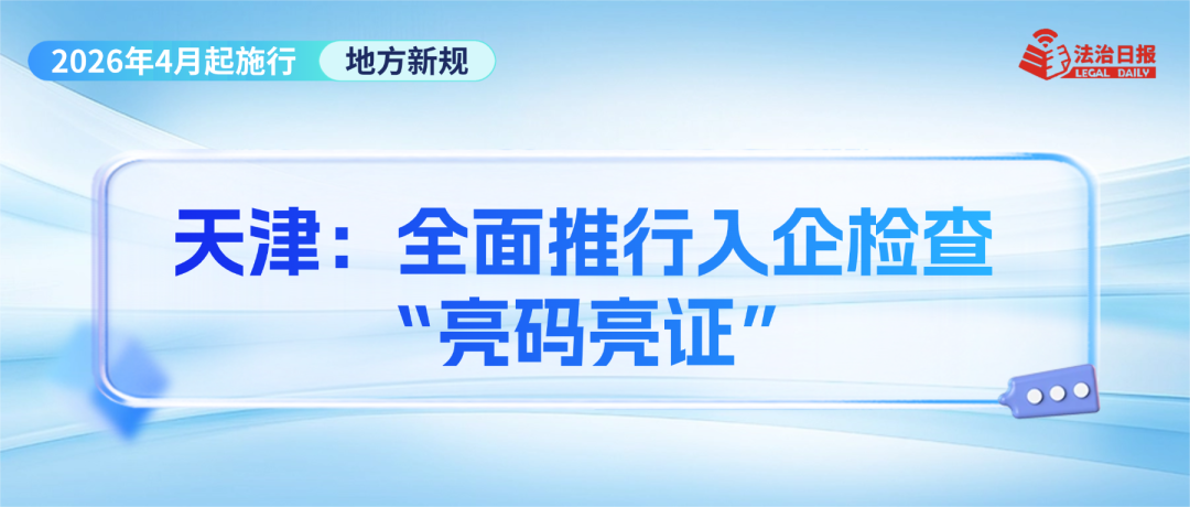 4月1日起,天津全市范围启用电子行政执法证,全面推行入企检查“亮码亮证”。检查结束后,受检企业可对行政检查进行满意度评价。