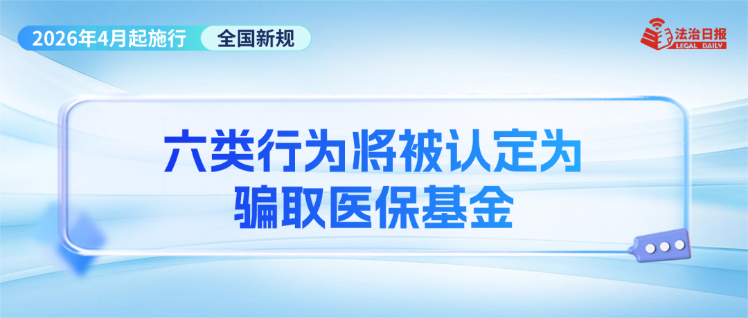 4月1日起,《医疗保障基金使用监督管理条例实施细则》施行,明确个人骗取医保基金的六类行为:冒用他人单据就医购药、隐瞒费用已由工伤保险或第三方承担且拒不返还、超量超范围购药转卖牟利、长期收购销售医保药品、出借本人医保凭证获利及其他骗保行为。