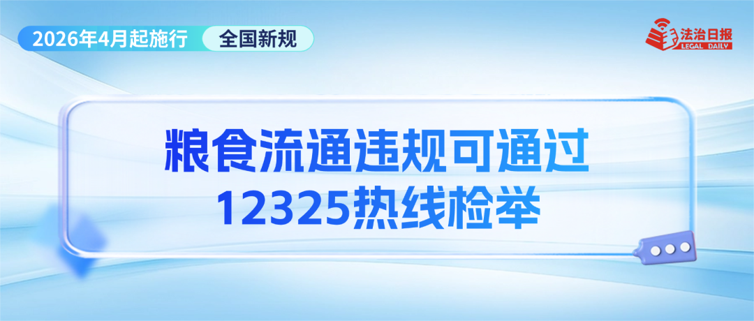 《粮食流通行政执法办法》4月1日起施行。其中提到,任何单位和个人有权通过12325全国粮食和物资储备监管热线等方式向粮食和储备部门检举违反粮食流通管理规定的行为。粮食和储备部门应当为检举人保密,并依法及时处理。