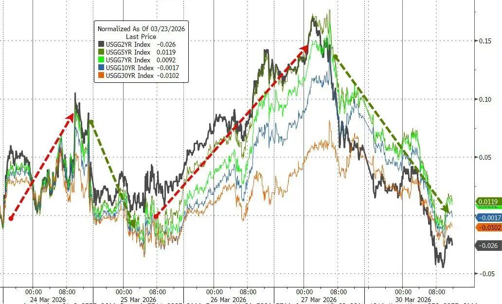 随着交易员抛售押注美联储将加息的头寸,美债市场周一(3月30日)从17个月来最严重的抛售中反弹,市场焦点转向了美伊战争将加剧全球经济放缓的猜测。