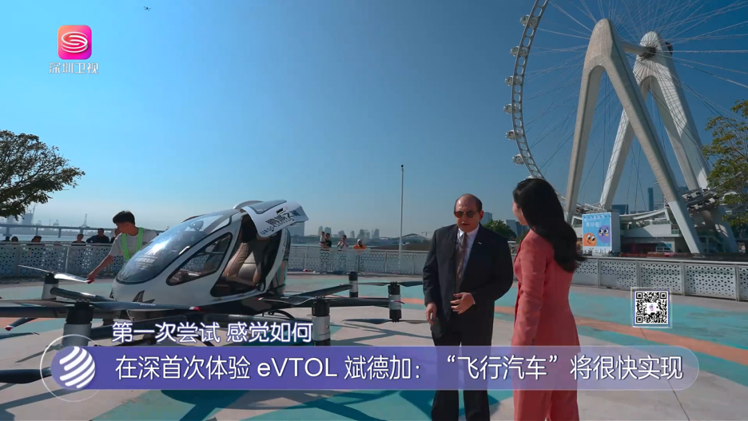 位于深圳前海的欢乐港湾,斌德加第一次坐进了电动垂直起降飞行器(eVTOL)的座舱。