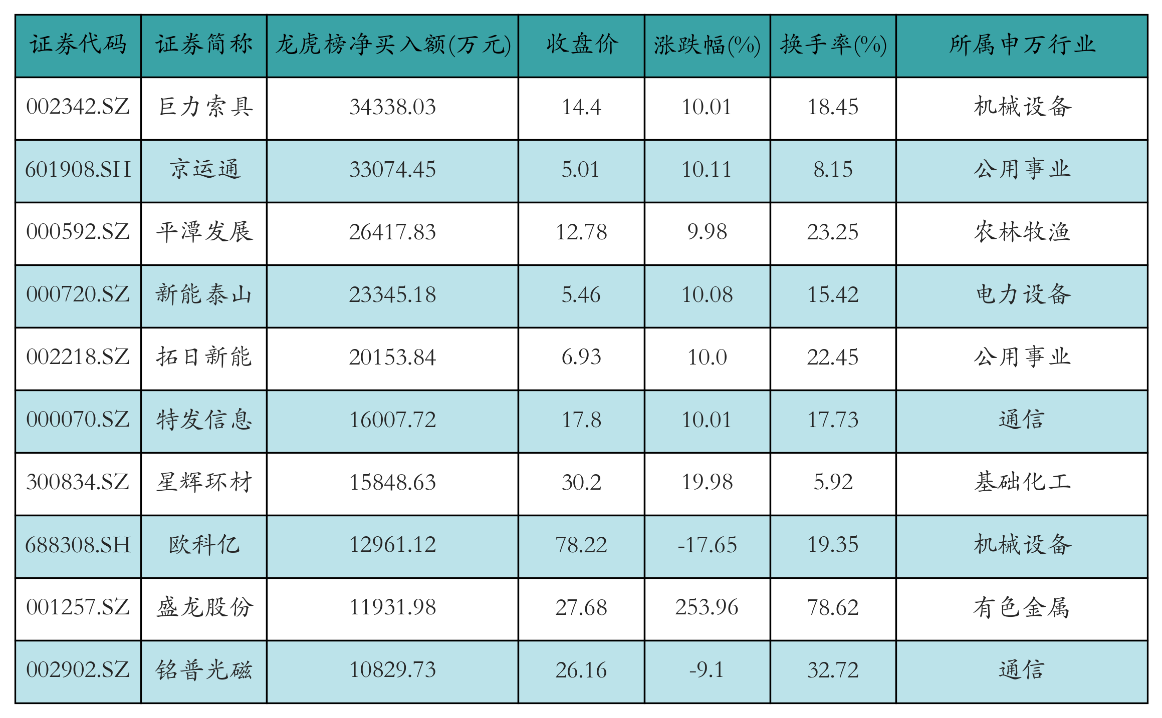 昨日龙虎榜营业部净买入额前10详情见下表: