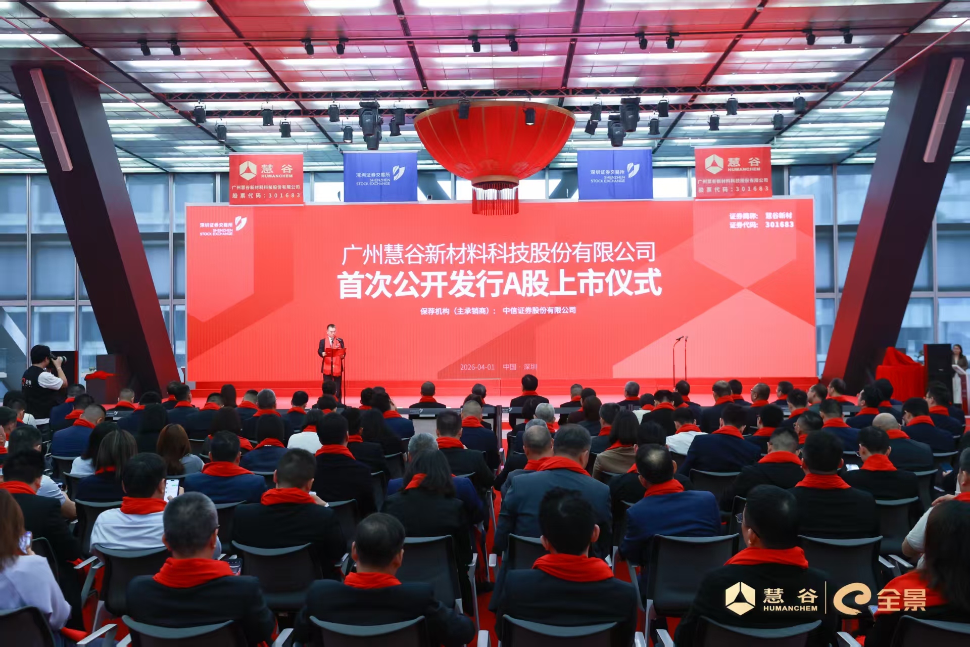 4月1日,广州慧谷新材料科技股份有限公司在深圳证券交易所创业板上市,股票代码为301683。至此,广州开发区、黄埔区上市公司累计达到93家,上市企业数量位居广州第一、全国经开区首位,持续领跑全国经开区资本市场发展。