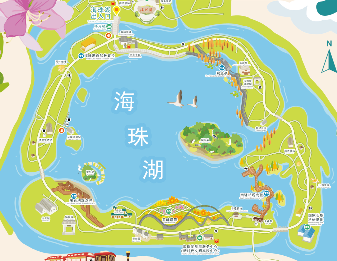 据悉,海珠湖建成于2011年,是海珠湿地首个建成开放区域,位于广州新城市中轴线南段,与广州塔、花城广场呈一直线,是广州新中轴上的生态焦点。海珠湖总用地面积2248.3亩,是广州市中心城区最大的集雨洪调蓄、引水补水、生态景观、康体休闲功能于一体的大型生态休闲湖区。作为全国特大城市中心区规模最大、保存最完整的生态湿地,年接待游客近千万人次,日均人流量逾2万人次,是繁华都市中人气鼎盛的生态绿芯。