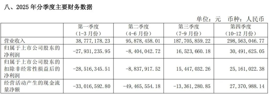 纵横股份季度数据显示,公司2025年第四季度实现营业收入2.99亿元,占全年总收入的近一半;实现归属于上市公司股东的净利润3049.16万元,成功扭转了上半年的亏损局面。