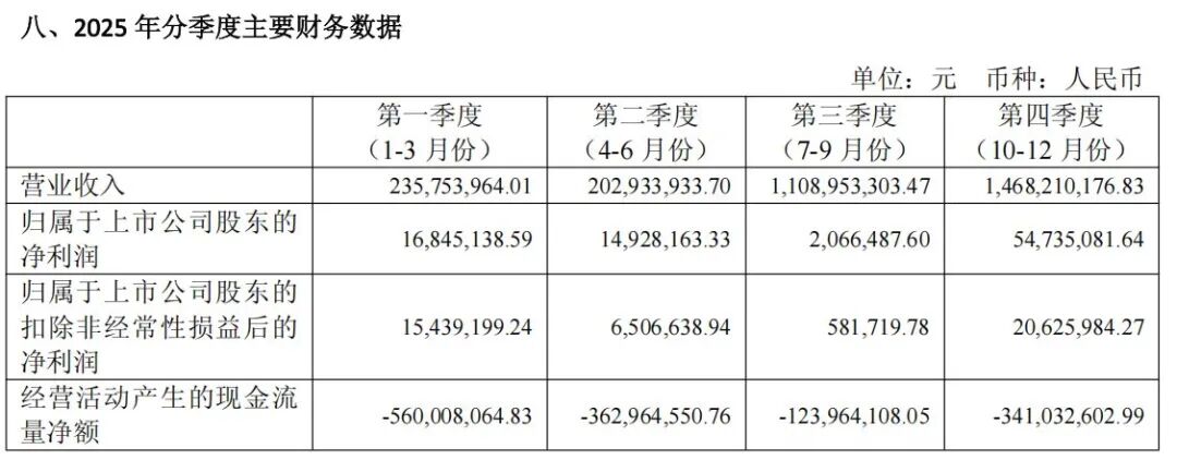 中无人机2025年第四季度实现营业收入14.68亿元,几乎接近2025年前三个季度总收入;2025年第四季度实现归属于上市公司股东的净利润5473.51万元,同样是全年业绩的绝对主力。