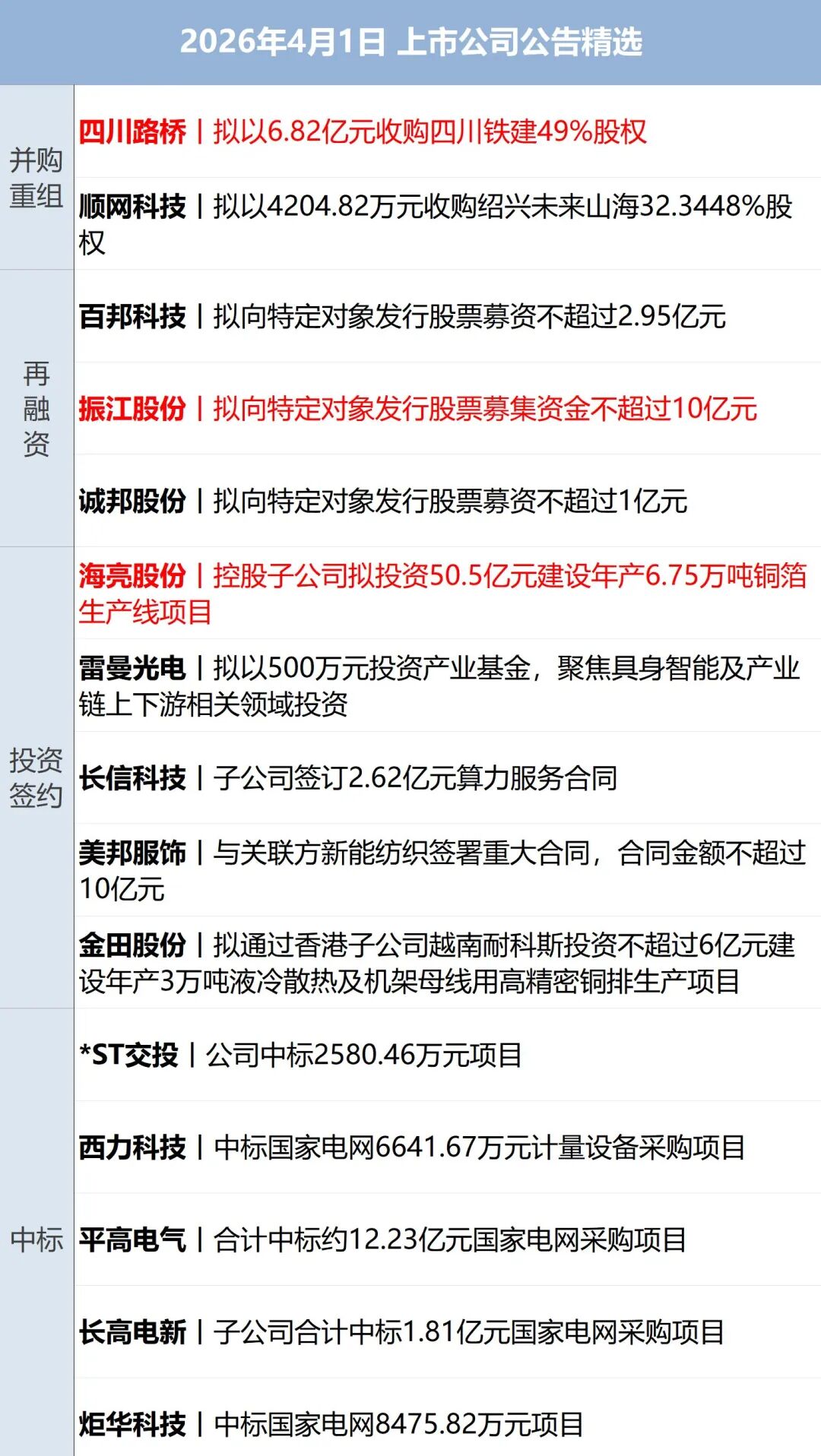 复星国际(HK00656,股价4.14港元,市值338.10亿港元): 3月30日,复星国际发布2025年度财报后,董事长郭广昌发2026致股东信。郭广昌在信中就亏损致歉。“亏损总是不好的,这样的业绩表现在复星三十多年的发展历程上也是前所未有的。虽然亏损主要是非现金损失,但没能实现盈利预期,作为本公司董事长和创始人,我要对所有关心复星发展的股东和合作伙伴致以深深的歉意。”他写道。