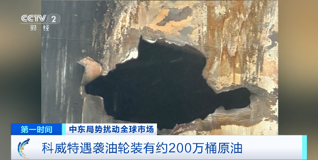 总台记者 王寅:据油轮追踪网站披露,此次遭袭油轮长度超过330米、船宽约60米,属于超大型原油运输船。遇袭时处于满载状态,船上约载有200万桶原油,按当前价格计算,总价值超过2亿美元。其中约120万桶来自沙特,80万桶来自科威特。这艘油轮早在一个多月前便已完成装载,与数百艘油轮一样,因霍尔木兹海峡通行受阻而滞留波斯湾水域。分析认为,此次袭击因载货规模巨大且涉及多个产油国,被视为地缘政治冲突的显著升级。