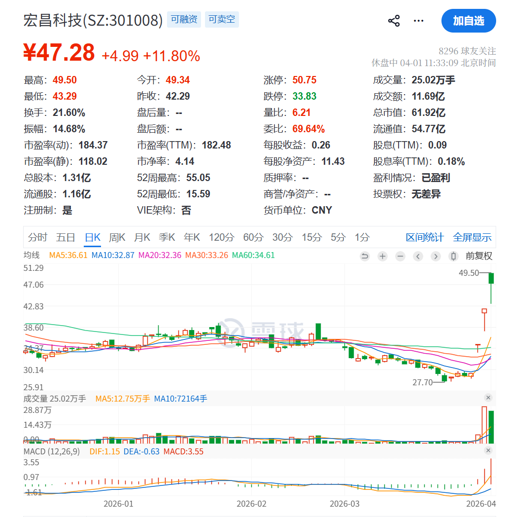 在资本市场上,张雪机车概念股继续狂飙。今日,宏昌科技(301008)大幅高开,盘中涨幅一度超过16%,截至午盘,涨11.8%,报47.28元/股。该股此前两个交易日均涨停,三个交易日累计涨幅超过60%。
