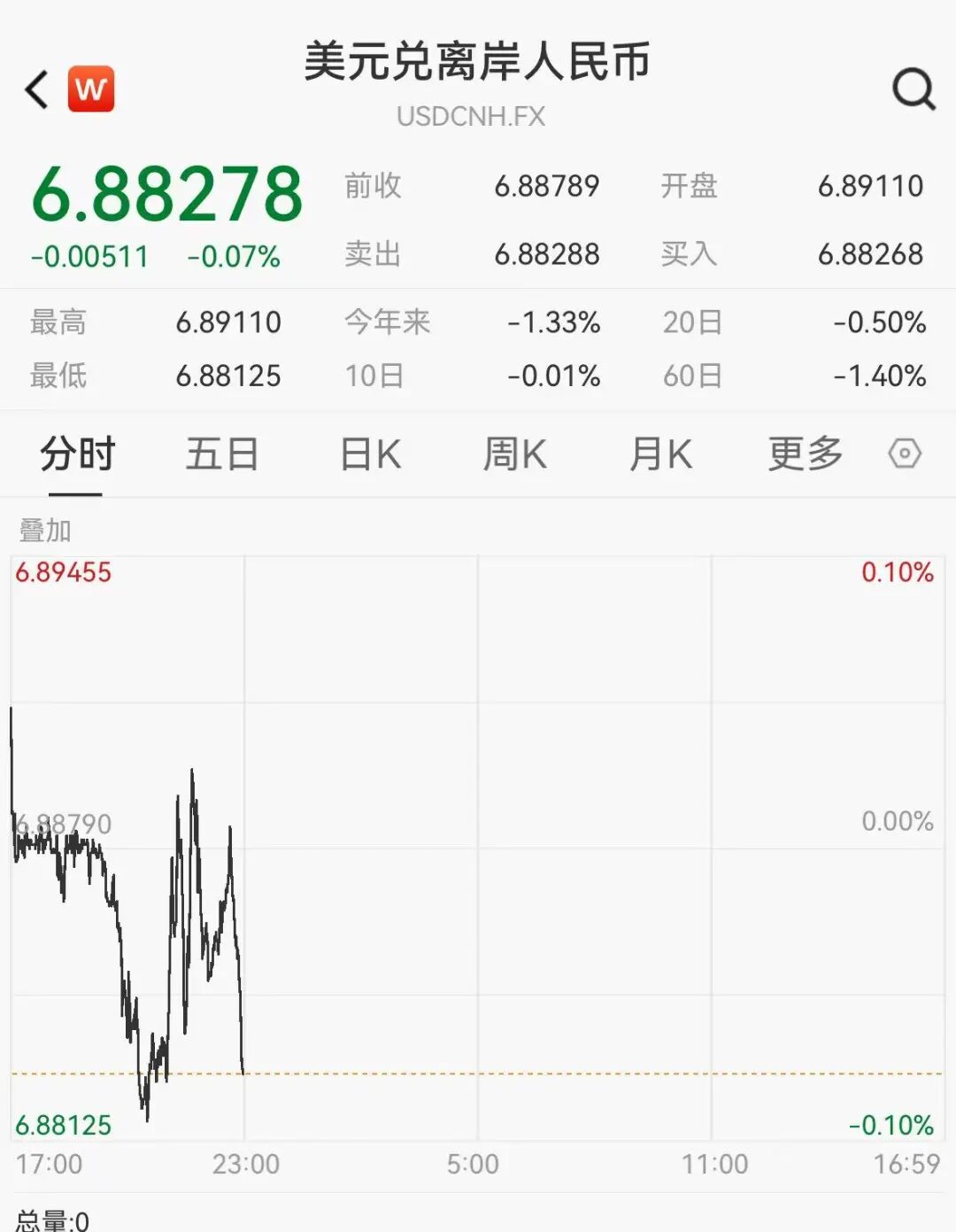 截至发稿,离岸人民币对美元最新汇率报6.88278,上涨511个基点。在岸人民币对美元最新汇率6.8803,上涨278个基点。