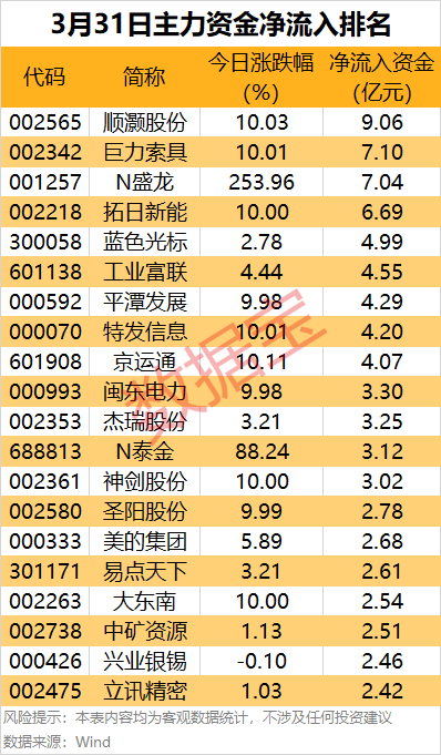 从个股来看,8股尾盘主力资金净流入金额均超4000万元,其中固态电池概念股圣阳股份净流入2.14亿元,尾盘股价直线涨停,公司 日前 在投资者互动平台表示, 与华为的相关业务合作稳定有序推进,订单按期交付符合预期。