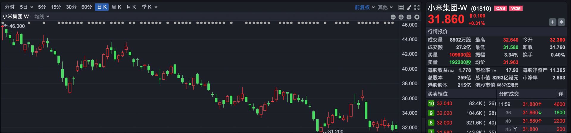 3.小米集团-W(HK01810):一季度累计跌幅超41%。