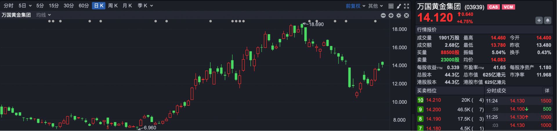 5.万国黄金国际(HK03939):一季度涨幅76.67%。