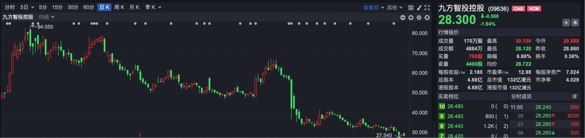 4.九方智投控股(HK09636):一季度累计跌幅41%。