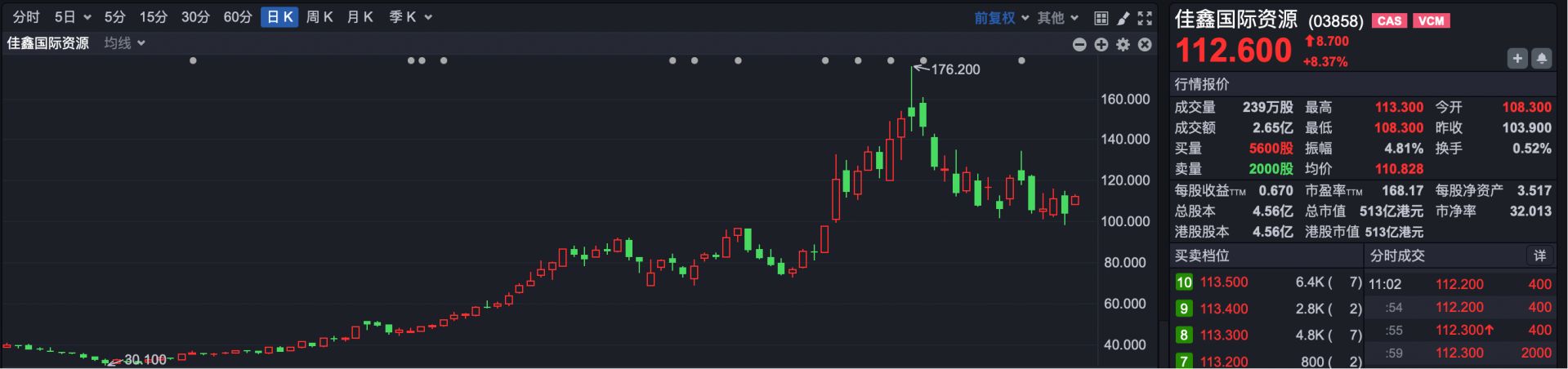 2.佳鑫国际资源(HK03858):一季度涨幅122.48%。