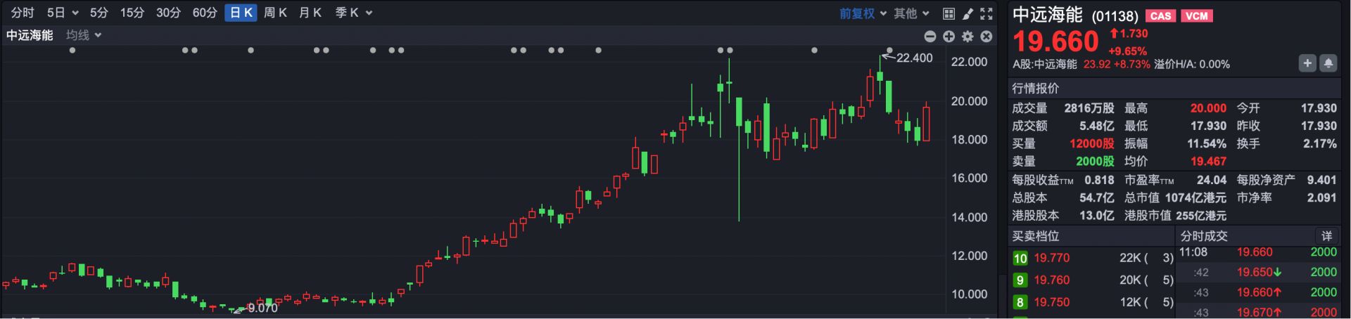 3.中远海能(HK01138):一季度涨幅86.77%。