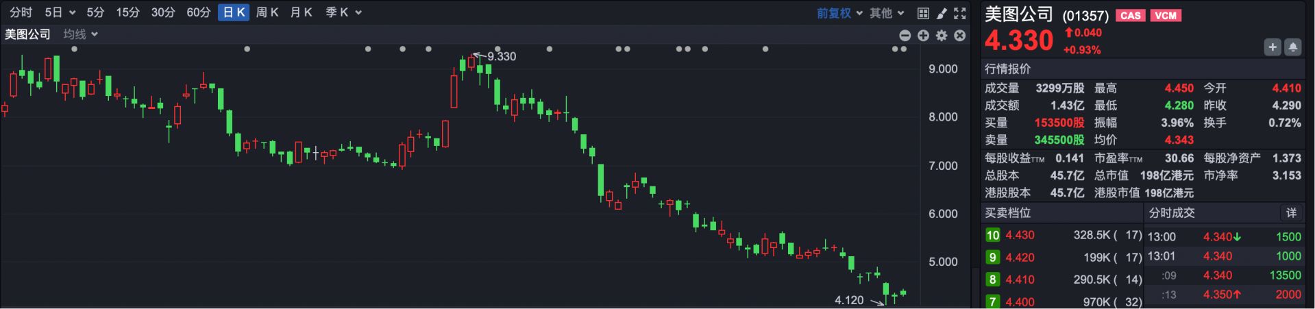 下跌原因:2025年财报显示,美图公司增收不增利。公司2025年实现营业收入38.59亿元,同比增长28.79%;净利润5.83亿元,同比下降27.61%。